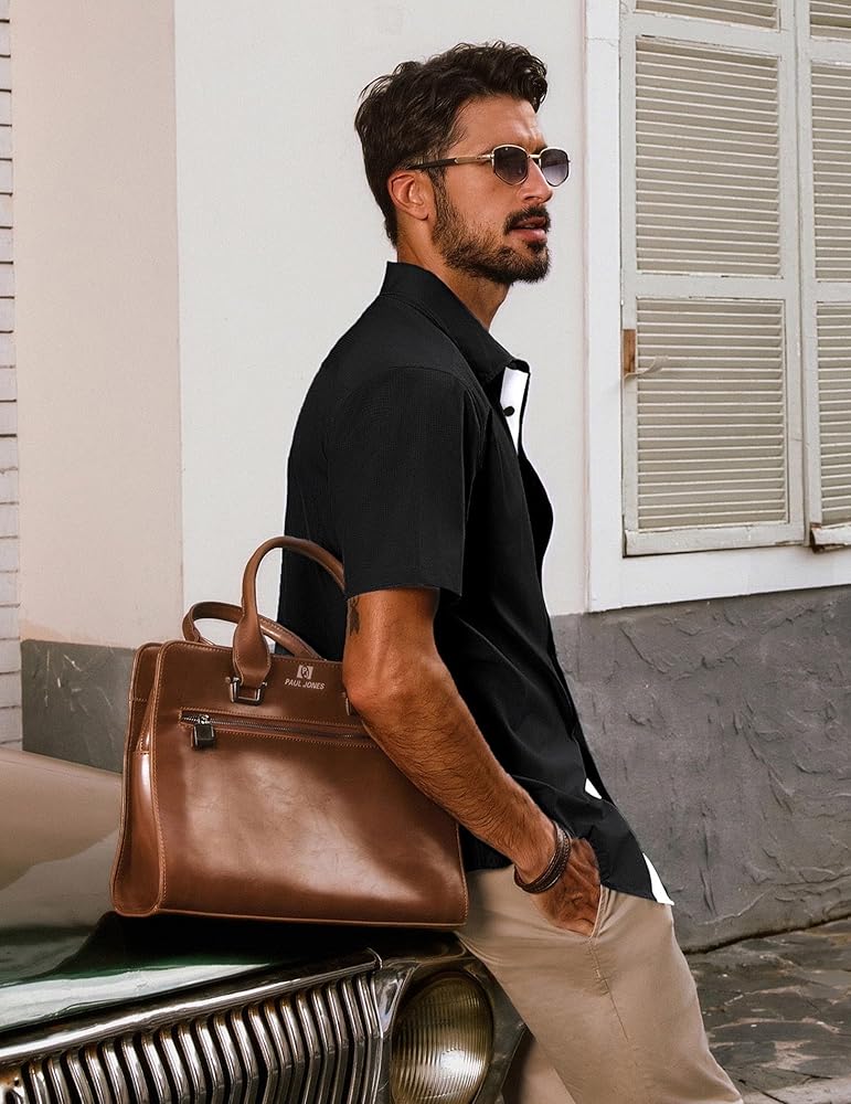 PJ PAUL JONES Mens Casual Shirts Short Sleeve Button Down Shirts Summer Wrinkle-Free Shirts with Pocket Black