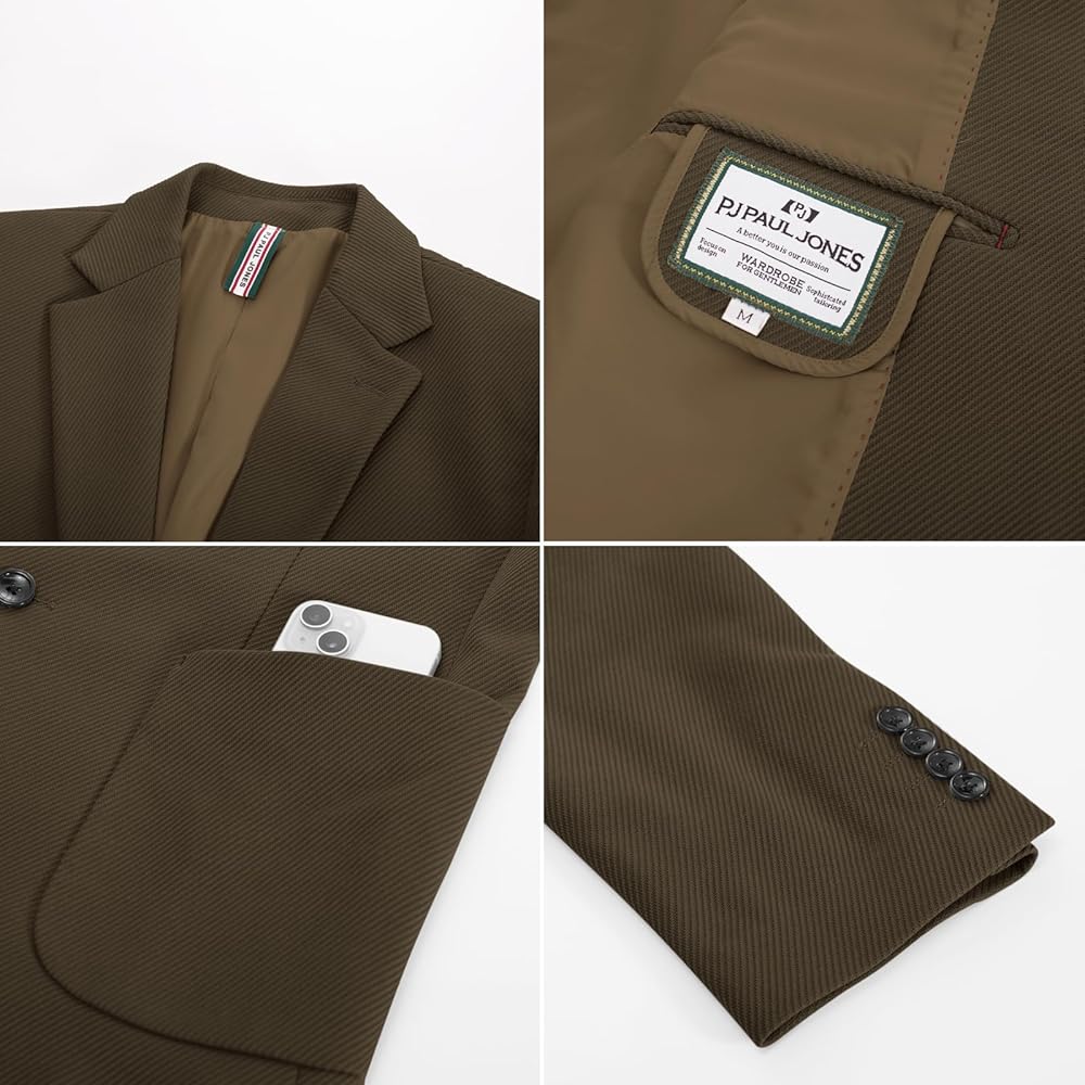 [Twill Textured Design: The twill textured knit fabric has a elasticity. Modern fashion lightweight sport jacket with notch lapel two button closure left chest pocket two front flap real pockets inside a real pocket full lining Elegant & Soft: The Jackets looks great comfortable and awesome. When you wear it it make you casual and full of energy and in formal occasion also can make you look elegant Easy Match: Say goodbye to the hassle of finding out how to match your clothes. You can wear a light suit jacket with a tie shirt T-shirt suit vest turtleneck sweatshirt slacks jeans pants sneakers leather shoes etc Suit For Any Occasion: This suit jacket is suitable for all seasons and occasions such as office wear meetings weddings party and everyday wear. Its timeless design ensures it will always be a must-have item in your wardrobe Easy Care: This suit jacket is machine washable convenient and easy to maintain. To ensure a perfect fit please refer to our size chart]