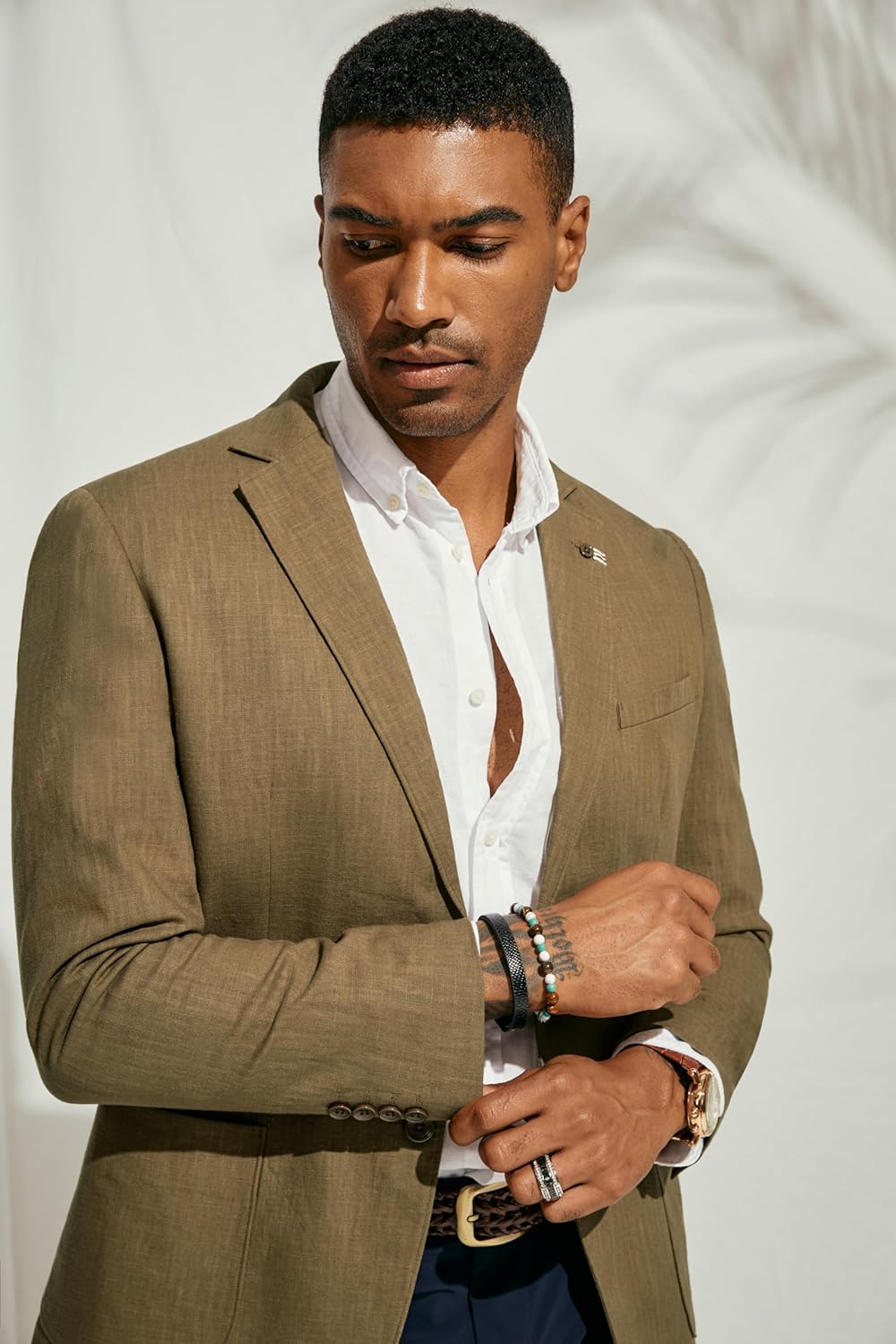 [Material: This blazer is made of high quality Linen and Cotton fabric only 570G for the size M. The fabric is very lightweight and breathable and it can reduce perspiration. It dissipates heat 4 times more than wool and 18 times more than silk Unique Design: The button and colorful ribbon on the lapel of this sport coat add a unique and stylish touch to the classic design. The unlined design makes this blazer more breathable and lightweight ensuring that your movement is not constricted perfect for all seasons Multi-functional Pockets: This sports jacket has 2 Patch Pockets 1 Chest Pocket and 2 Inner Pockets. All pockets are real and available. The pockets are closed by some stitches when you received it after cutting stitches you can use the pocket For All Occasions: This blazer jacket is suitable for various occasions such as Casual Dating Meeting Business Work Travel Wedding Banquet Concert Festival Club Prom Holiday ect. Notes: 1)Our blazers are made of Cotton-Linen in order to give you a better wearing experience please iron before wearing 2)To Choose the most appropriate size please refer to our SIZE CHART picture in the pictures column]